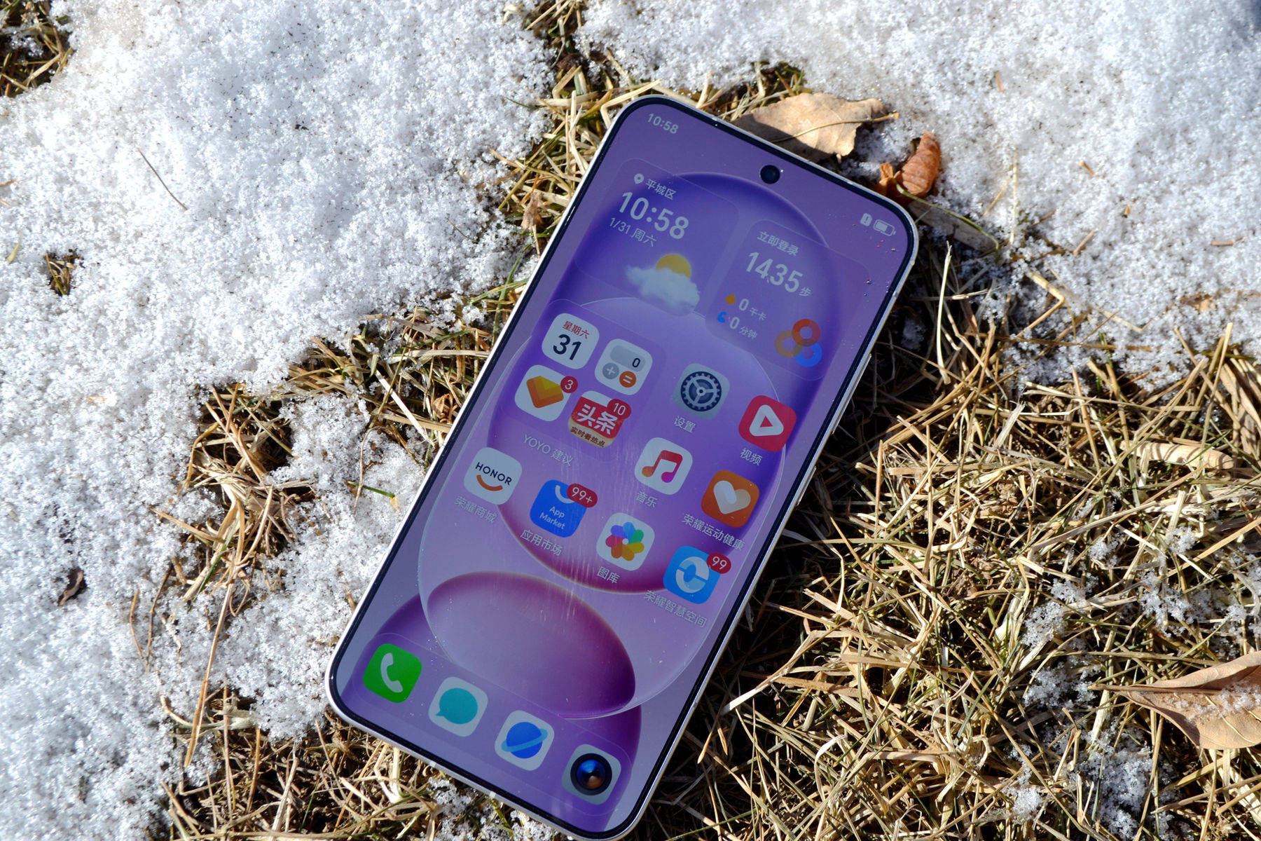 屏幕方面,荣耀给这台机器搭载了一块6.31英寸的荣耀AI绿洲护眼屏,这个尺寸按现在的标准来看,可以说是一块小屏幕了,毕竟是荣耀的magic旗舰系列,这块屏幕的素质也非常高,1.08mm的极窄四等边边框,点亮屏幕,满满的视觉沉浸感,并且这块屏幕支持最高6000nits的峰值亮度,在户外强光环境下,也可以看清屏幕。