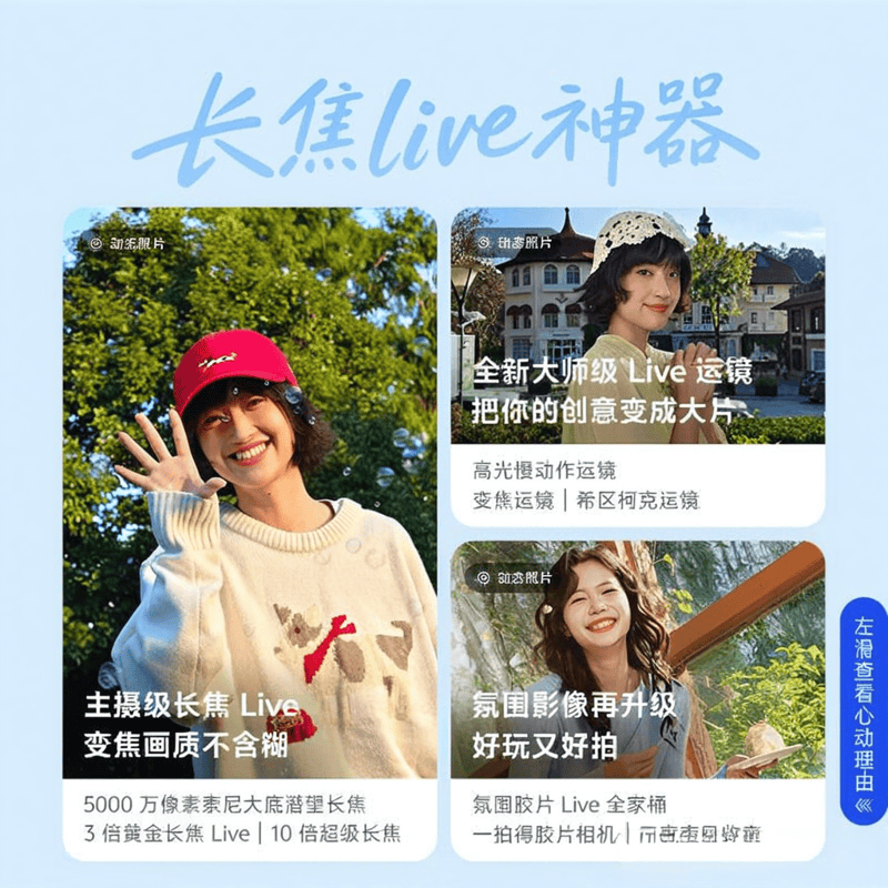 最大的亮点是主摄级长焦Live功能,拍照时不仅能清晰捕捉远处的景物,还能实时优化画面效果。比如在演唱会现场,即使坐在后排也能拍清舞台上的明星;旅行时拍摄风景,远处的山水细节都能完美呈现。AI拍照功能可以智能识别超过200种场景,自动调整参数,让每张照片都像专业摄影师拍的一样。